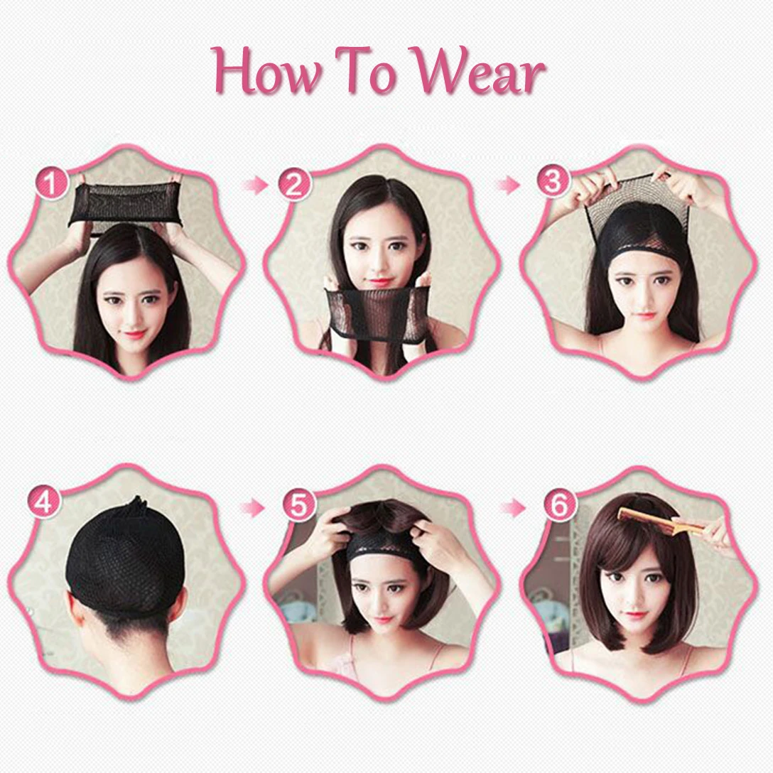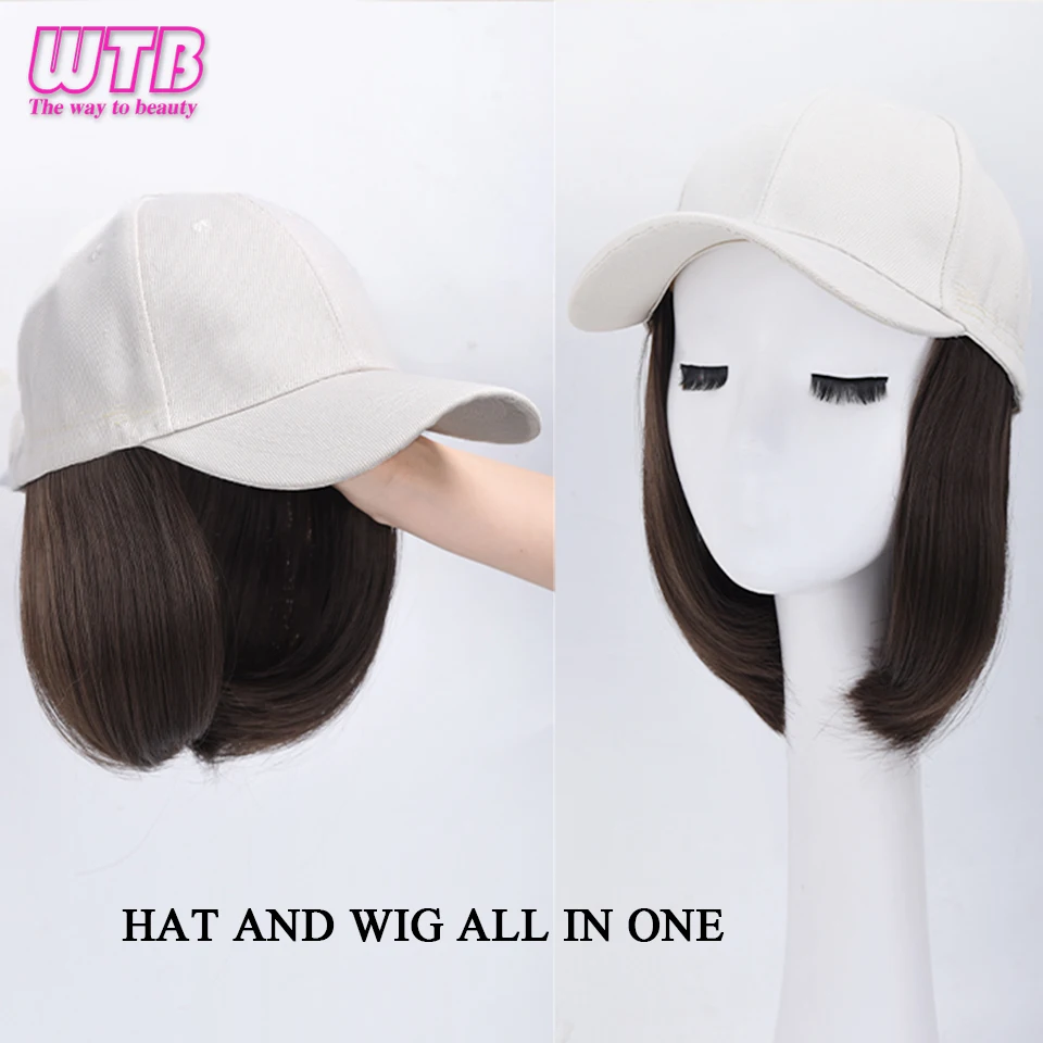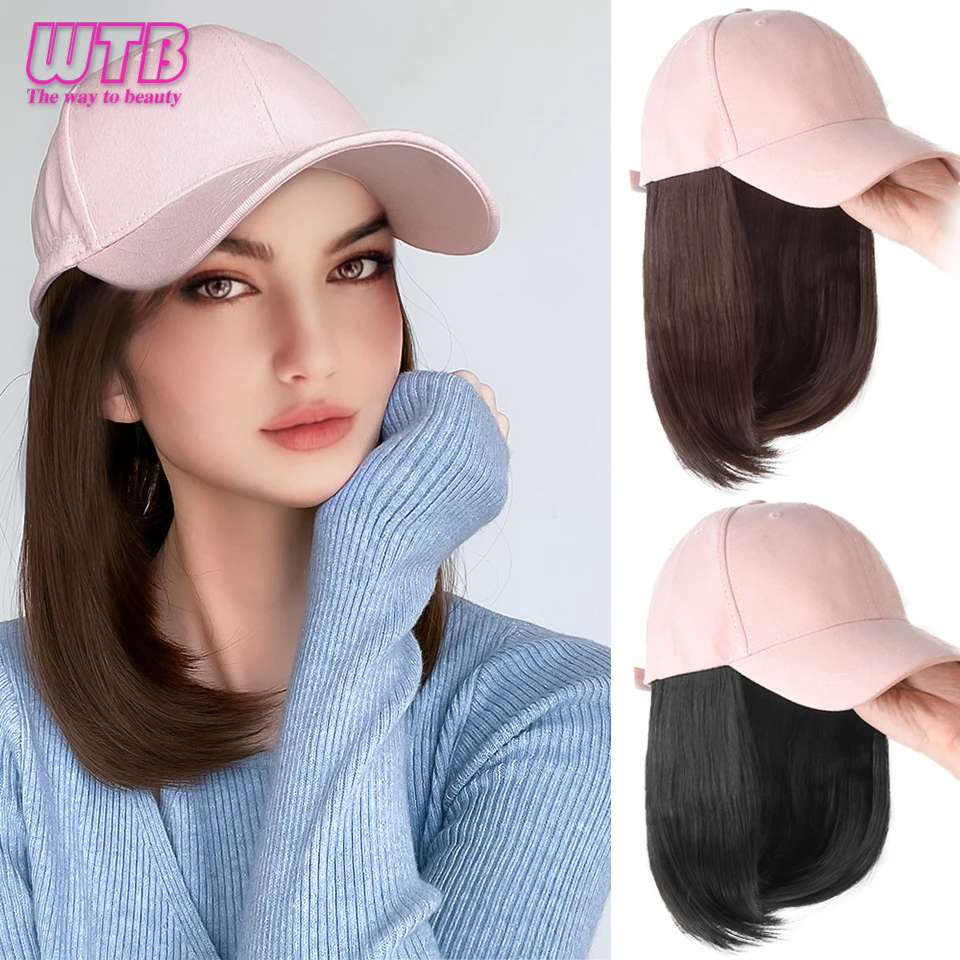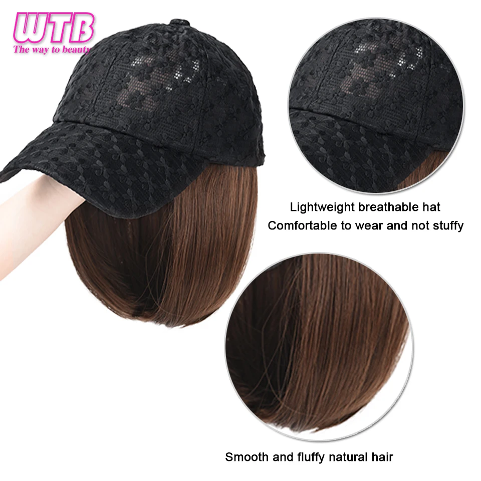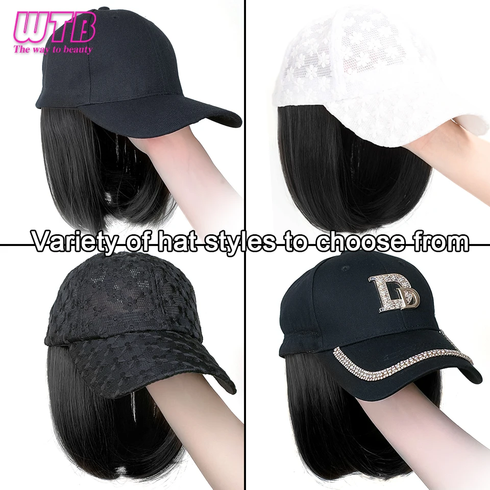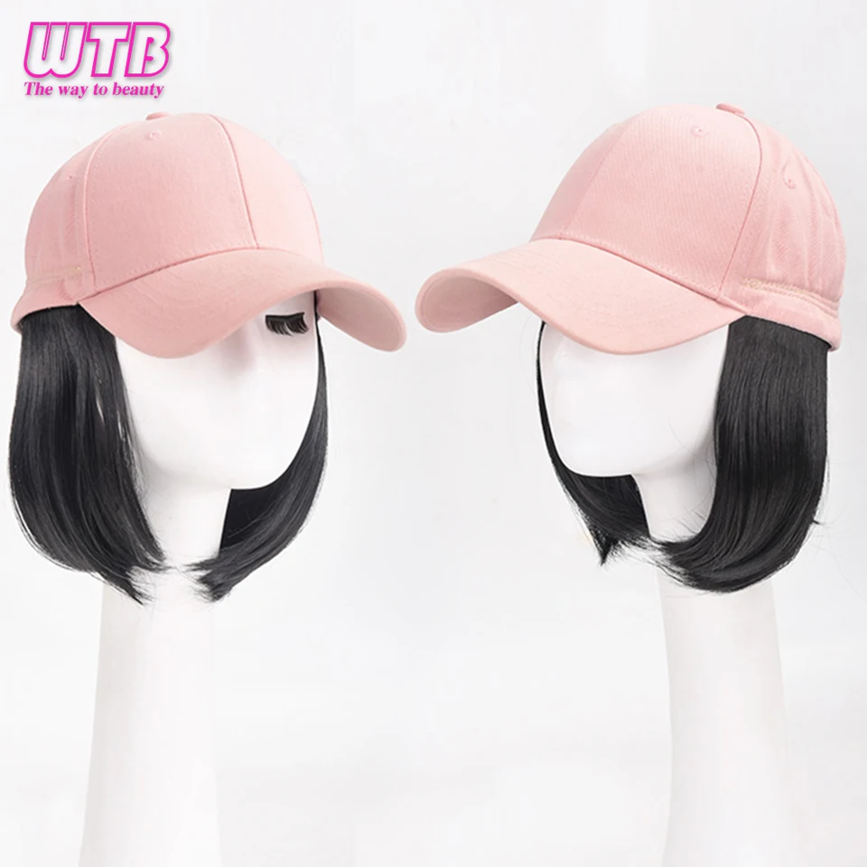 WTB Synthetic Natural Wigs Hat Seamless Connection Hair Extension for Women Wigs Short Bob Baseball Cap Wig Adjustable Black