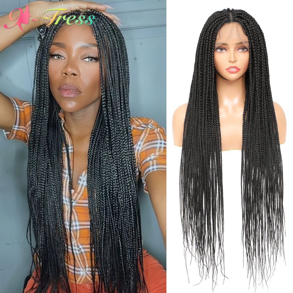 X-TRESS Full Lace Front Synthetic Box Braided Wigs With Baby Hair 32" Super Long Straight Knotless Braids Wig For Black Women