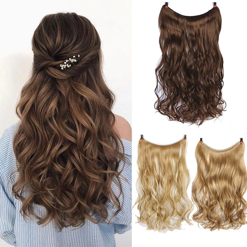 XUANGUANG Synthetic 24inch Invisible Hair Wire Without No Clip Hair Extension Fishing Line Wig Wavy Hair Female False Hair Piece